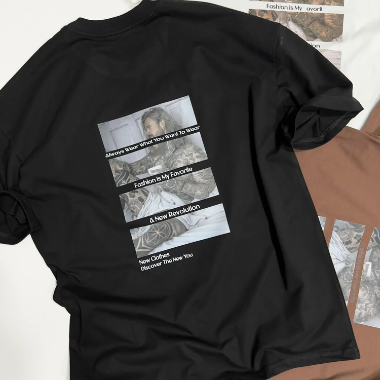 تیشرت چاپ دار قواره باکسی مشکی قیمت عمده
