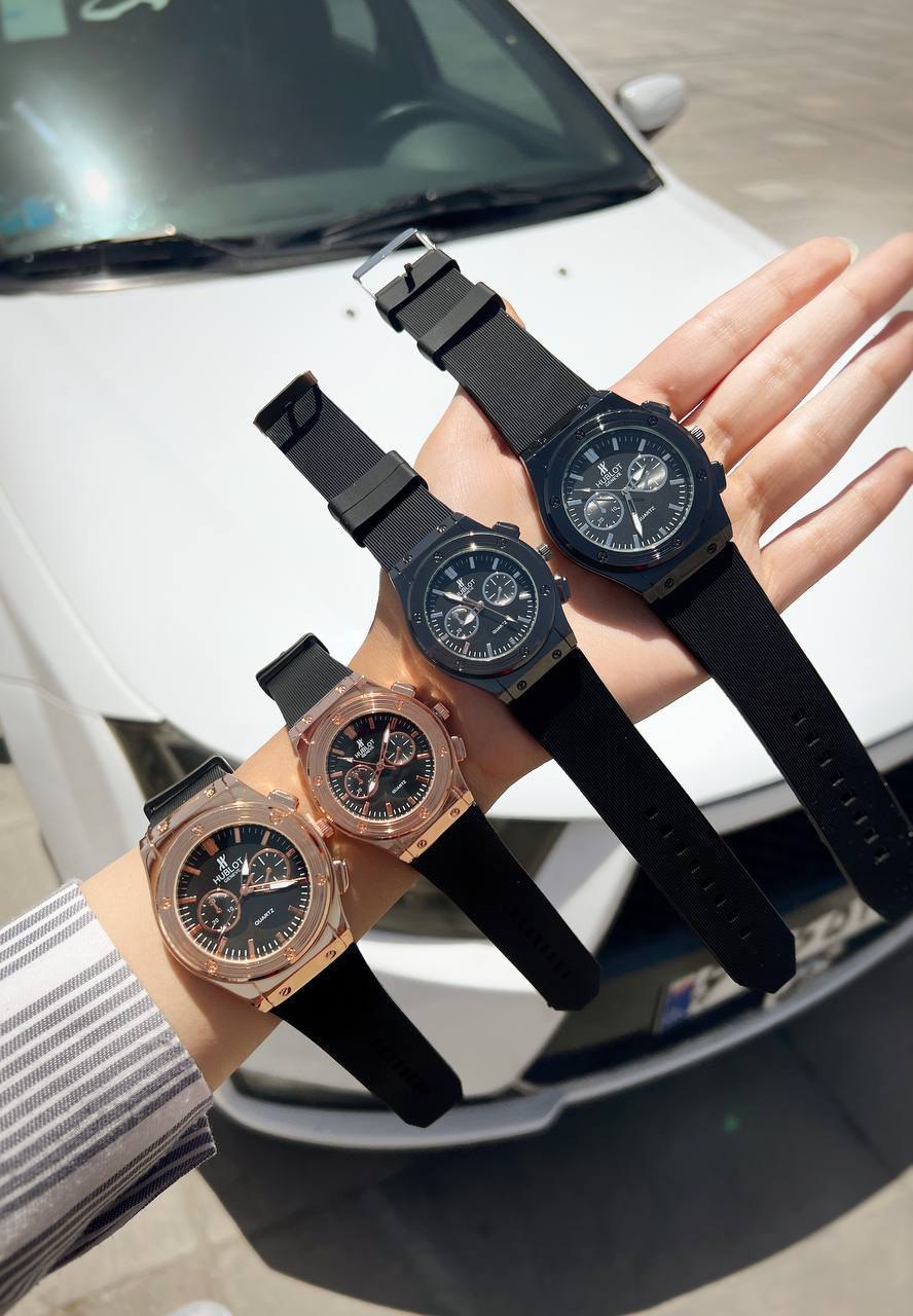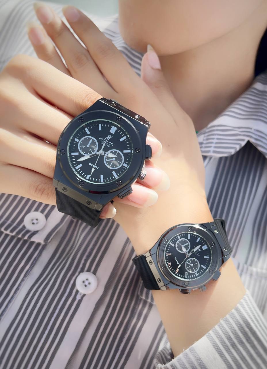 ست ساعت زنانه مردانه هابلوت HUBLOT طرح دو موتور کیفیت مناسب ضد خش بند سلیکونی ضدآب درحد شستشو