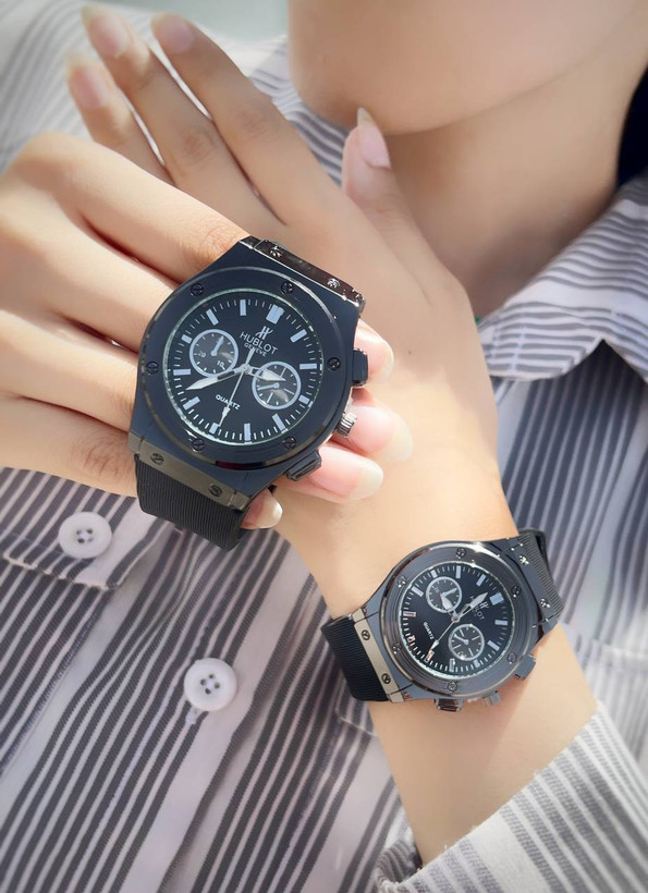 ساعت مچی هابلوت hublot مشکی طرح دوموتوره مدل مردانه و زنانه تمام مشکی مناسب برای ست کردن انواع استایل روزمره است.