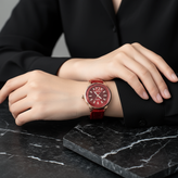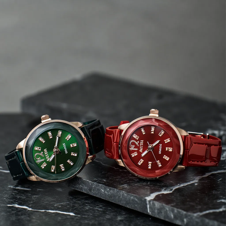 • رنگ صفحه: جذاب با جلوهای شیک و زنانه متناسب با بند و رنگ صفحه ساعت است و یکسان می باشد.